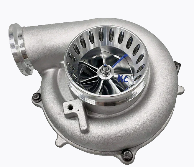 Improve your 7.3 Powerstroke engine's performance with the KC300x Stage 1 63/70 Gen 2 Turbo. This turbo features a 4" ported housing with drilled anti-surge for better flow, a 63mm 7x7 SXE style compressor wheel with extended tip technology, and a 70mm SXE style turbine wheel. The KC300x is a reliable journal bearing drop in turbo perfect for increasing your 7.3 Powerstroke's performance.