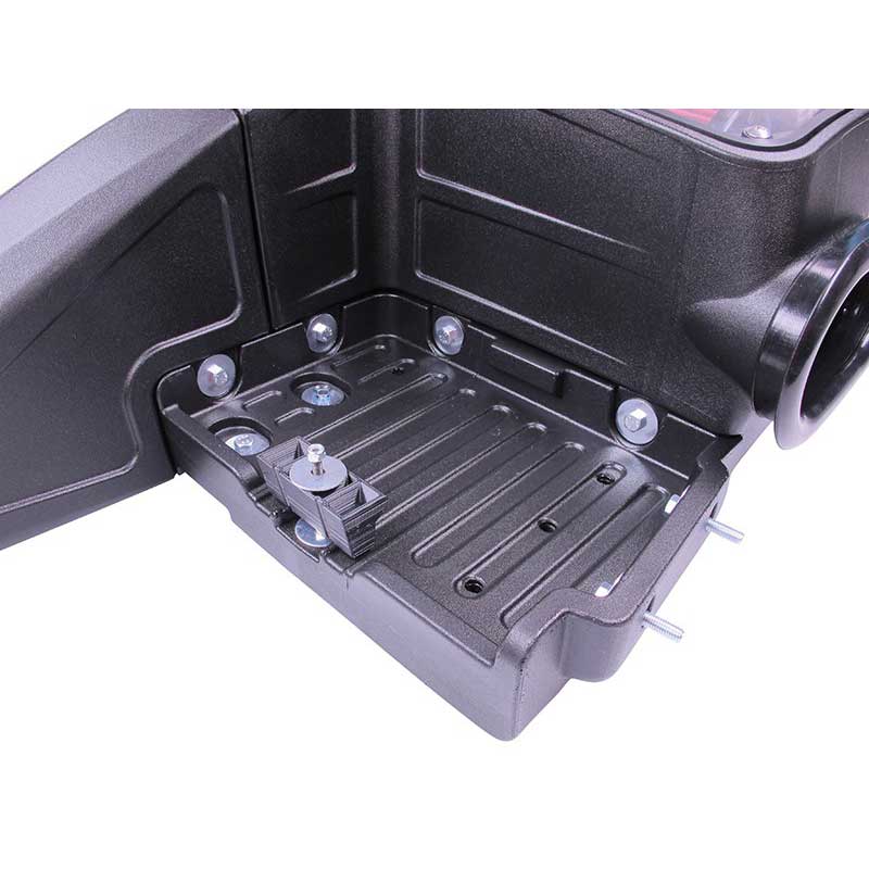 A rotomolded battery tray in incorporated right into the intake kit for a sleek look, and perfect fitment.